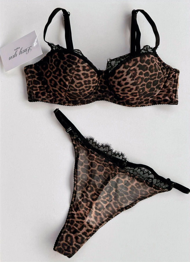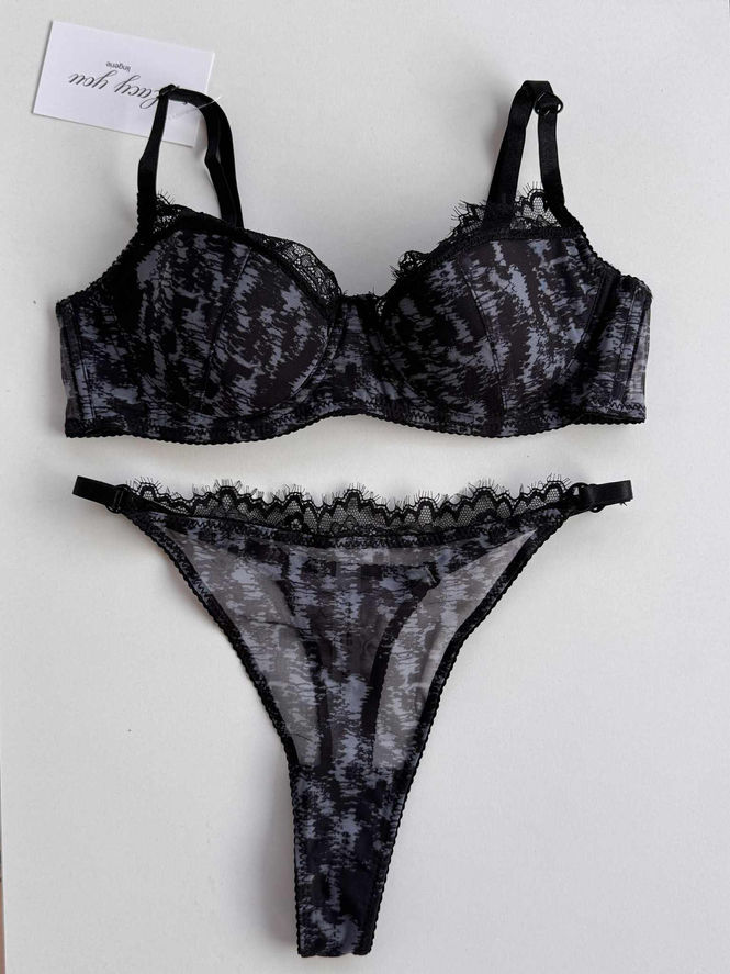 Σετ εσωρούχων με πριντ, ρυθμιζομενες τιράντες και στρινγκ εσώρουχο με δαντελένιες λεπτομέρειες